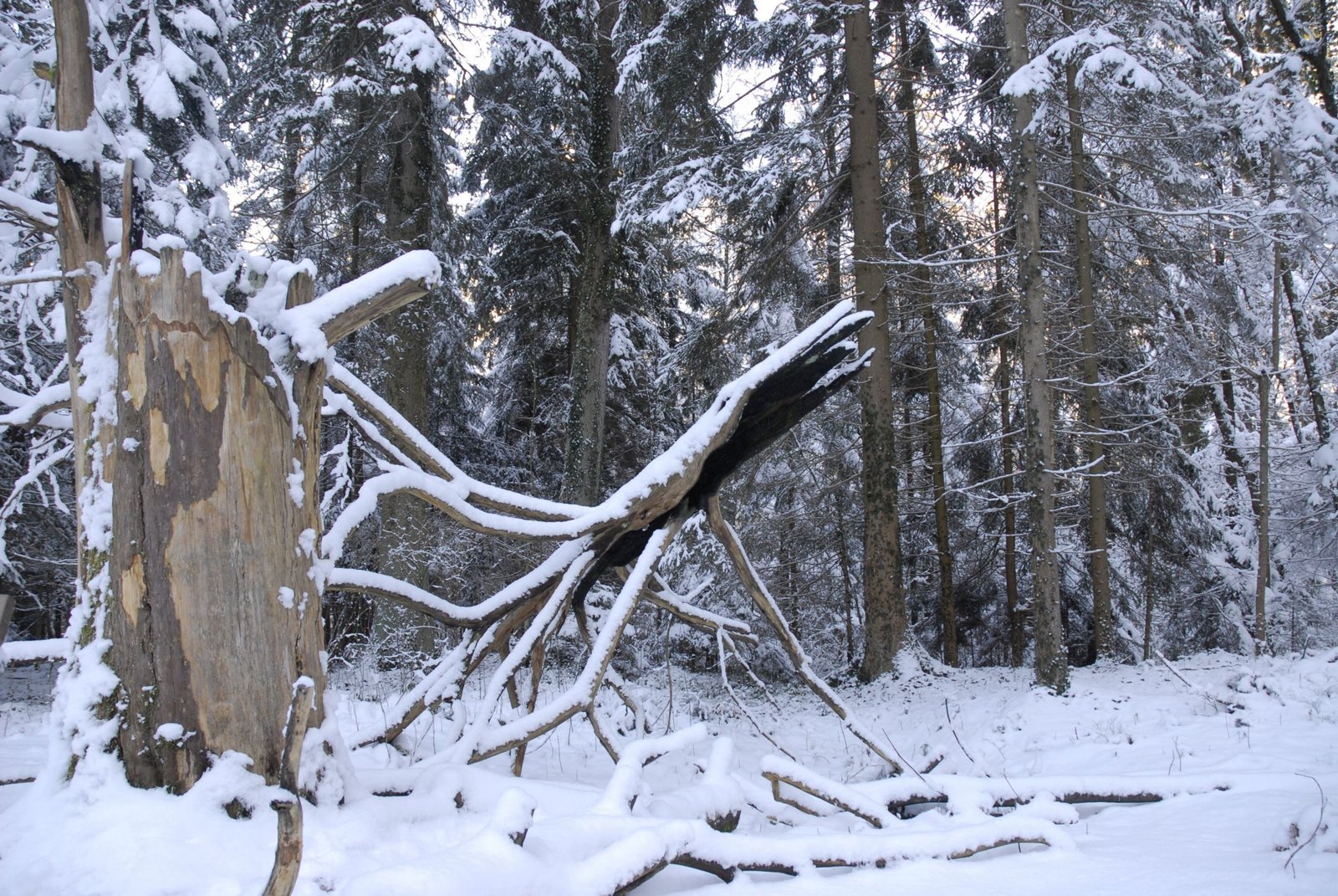 Überlebenskünstler im Zauberwald - Die Eiben von PaterzellDie "Feuereibe" im Winter. Seit Jahren bewacht die ausgebrannte Krone der ehemals ältesten Eibe im Wald wie ein Fabelwesen diese Lichtung. Für die einen ist sie "das Krokodil", andere sehen in der bizarren Skulptur eine Riesenkrake.Bild: © BR/Kai Schubert