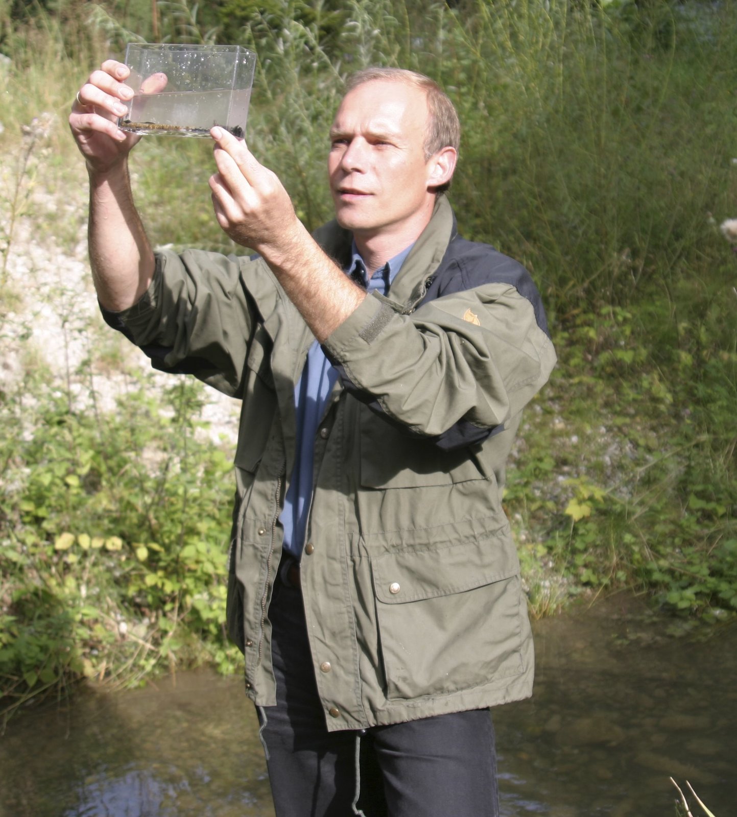 Der Donaulachs kehrt zurückDer Huchen-Spezialist Oliver Born untersucht Kleinstlebewesen.Bild: © BR/Oliver Born