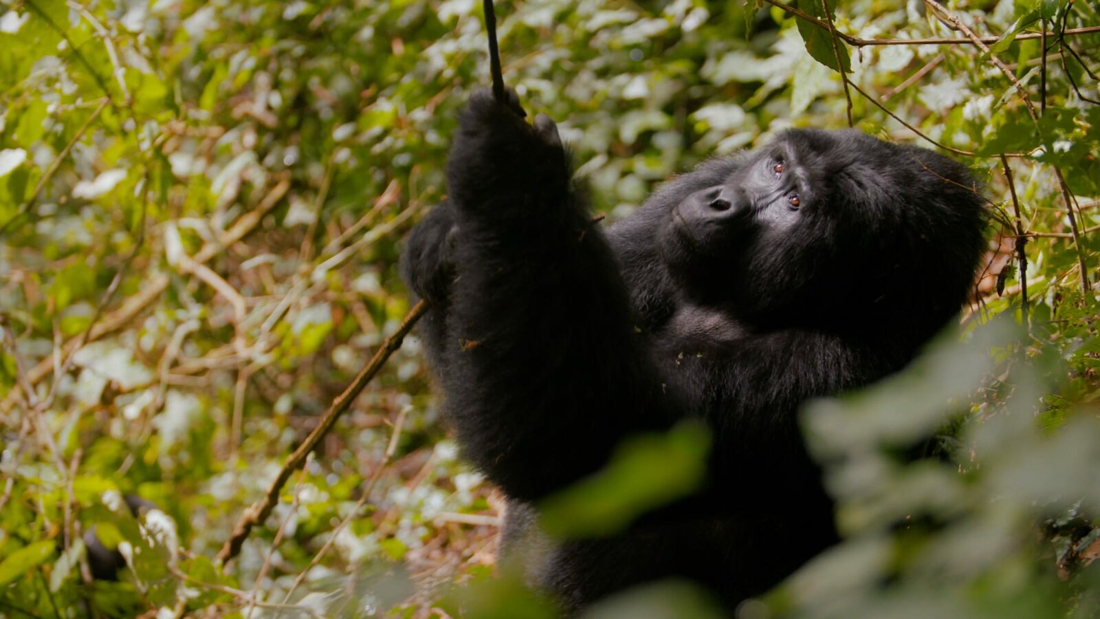 Gorillas unter Stress - Lebensraum am LimitEin Berggorilla im Bwindi-Wald in Uganda.Bild: © BR, MDR, IN ONE MEDIA / BR/IN ONE MEDIA/MDR