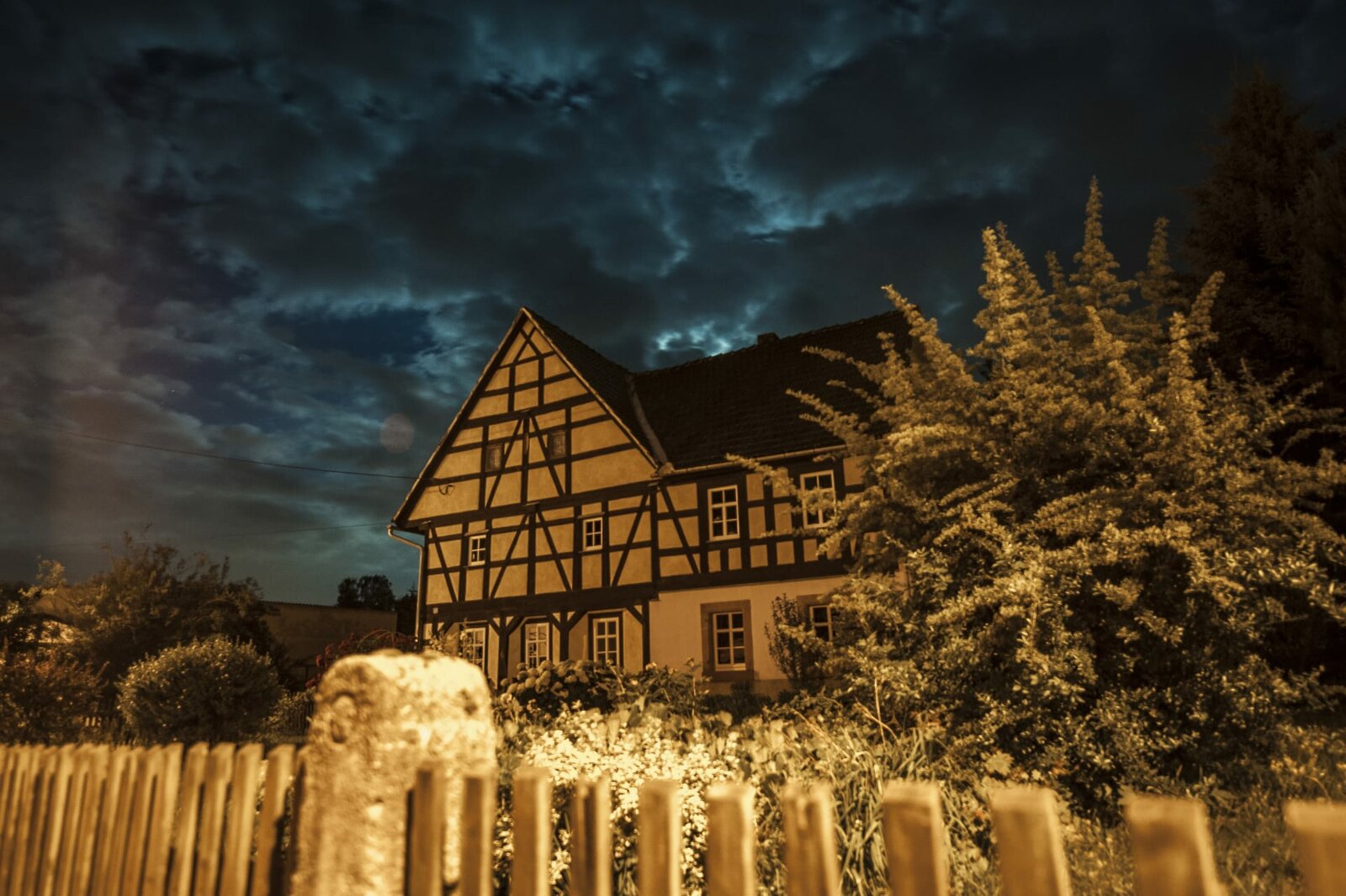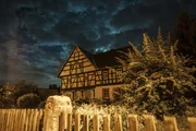 Wilde Nächte - Wenn die Tiere erwachenNächtliches Fachwerkhaus mit VorgartenBild: © BR/Capricornum Film/Julian Kolb