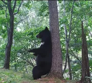 Kragenbären im TigerwaldEin Kragenbär markiert einen Baum.Bild: © BR