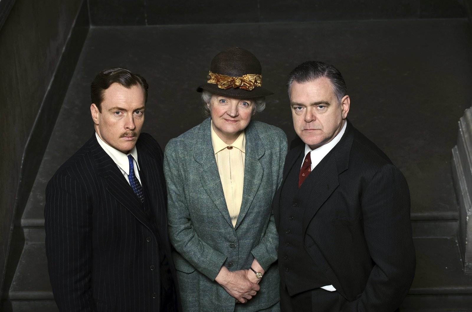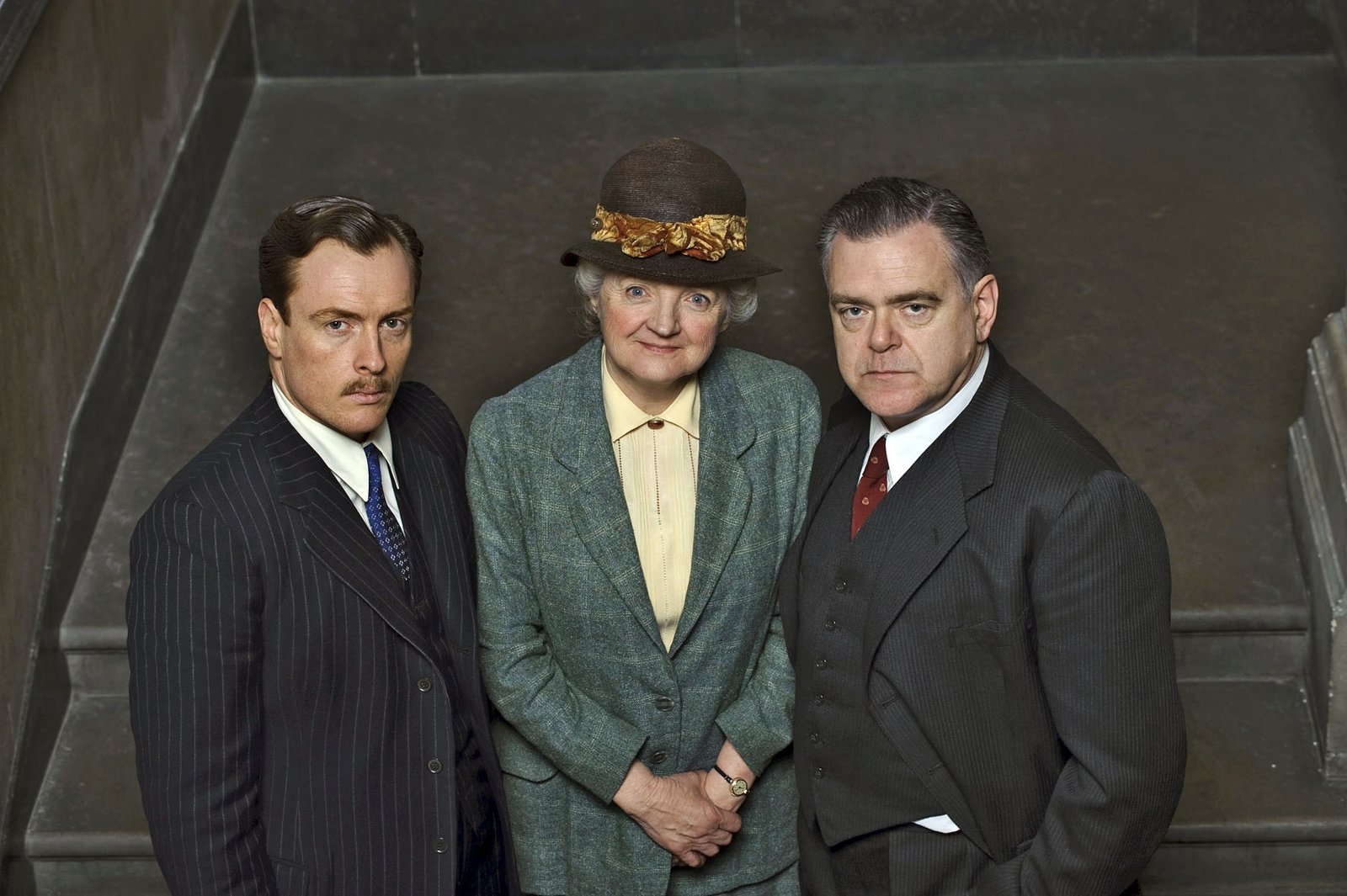 Die blaue GeranieV.l.n.r.: George Pritchard (Toby Stephens), Miss Marple (Julia McKenzie), Detective Somerset (Kevin McNally)Bild: © WDR/ITV plc/Granada International