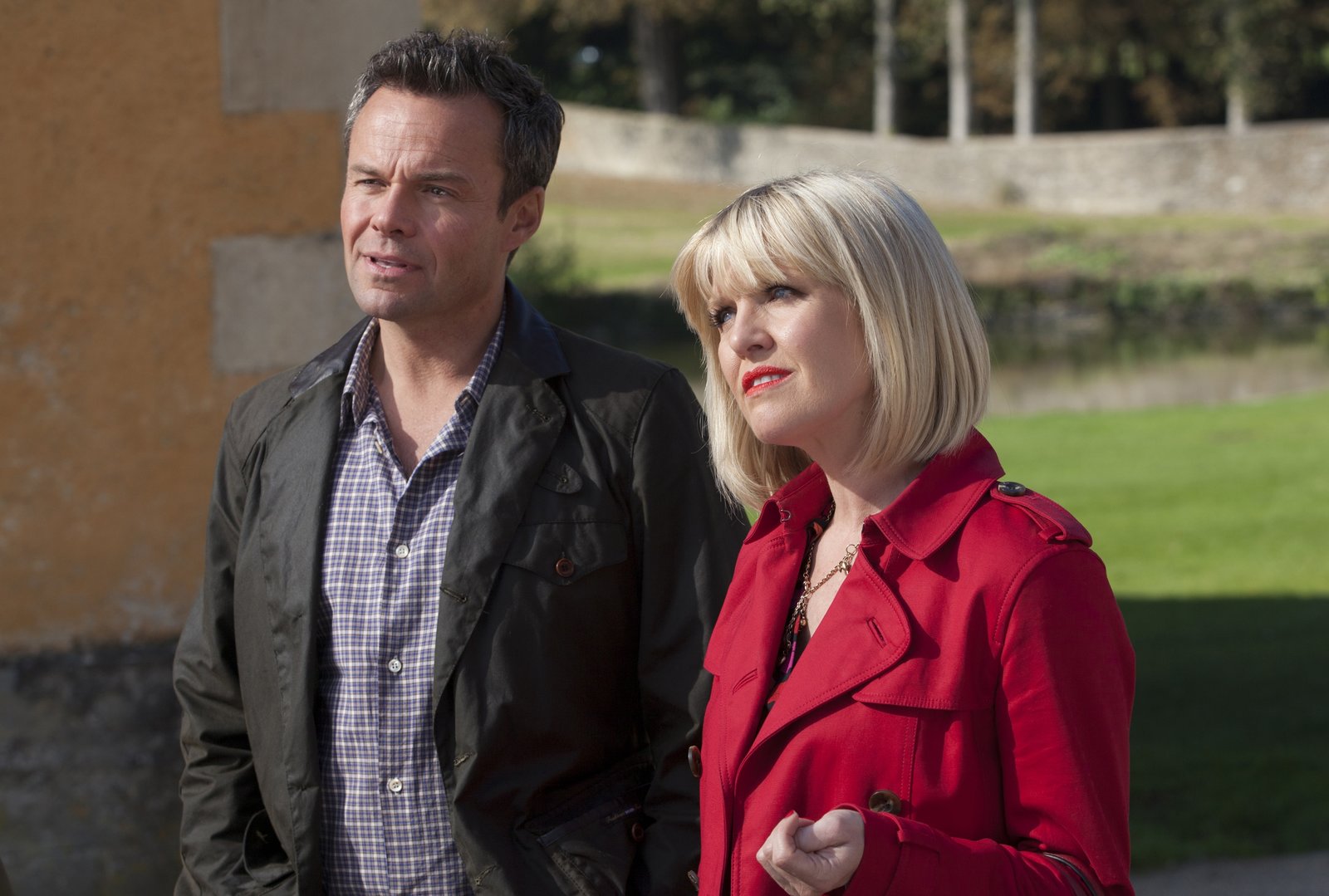 Der Tote im WasserAgatha Raisin (Ashley Jensen) vertritt nicht nur die Mineralwasserfirma, sondern bandelt auch mit dem Chef des Unternehmens, Guy Freemont (Jules Knight), an. Das gefällt nicht allen Dorfbewohnern.Bild: © ZDF und Jon Hall.
