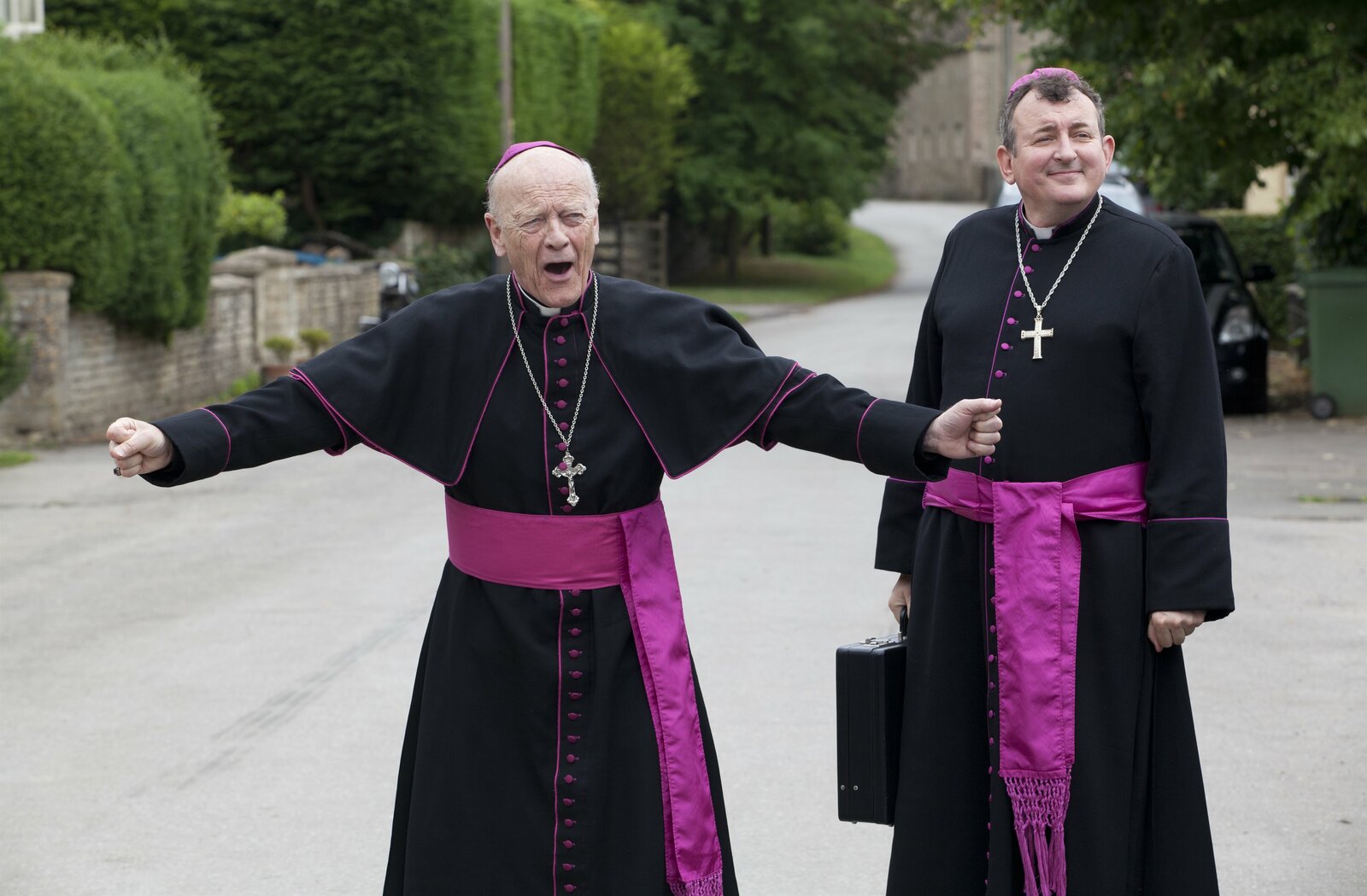 Die tote GlöcknerinBischof Michael Parsons (Michael Byrne, l.) und Canon Gibson (Richard Braine, r.) sind zu Besuch in dem kleinen Örtchen Carsely. Die Bewohner bereiten sich schon lange auf die Gäste vor, doch der Tod von Amanda wirft einen Schatten auf das lang erwartete Ereignis.Bild: © ZDF und ©Jon Hall for Sky 1./©Jon Hall for Sky 1