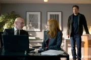Scully (Gillian Anderson, l.) bittet Officer Pendrell (Brendan Beiser, M.) um Hilfe bei der Entschlüsselung der merkwürdigen Computerdateien. Das Ergebnis lässt Skinner (Mitch Pileggi, r.) sehr hellhörig werden.