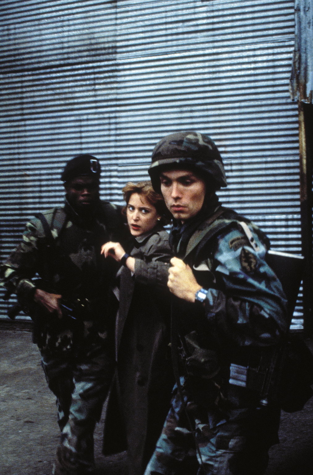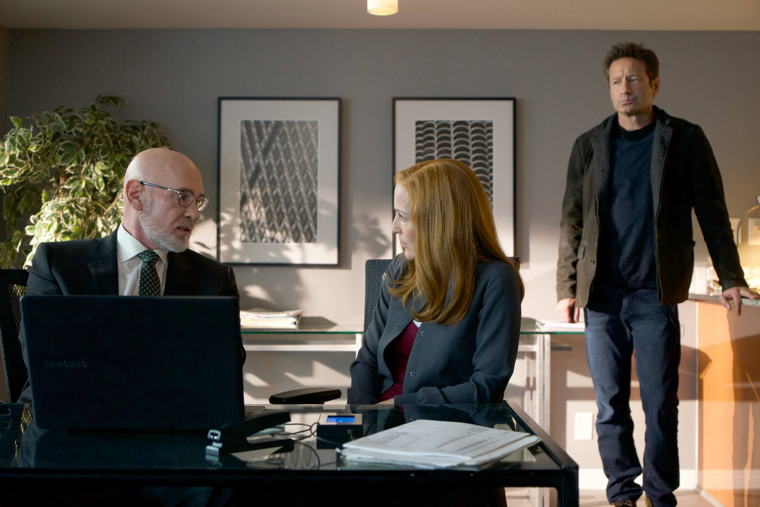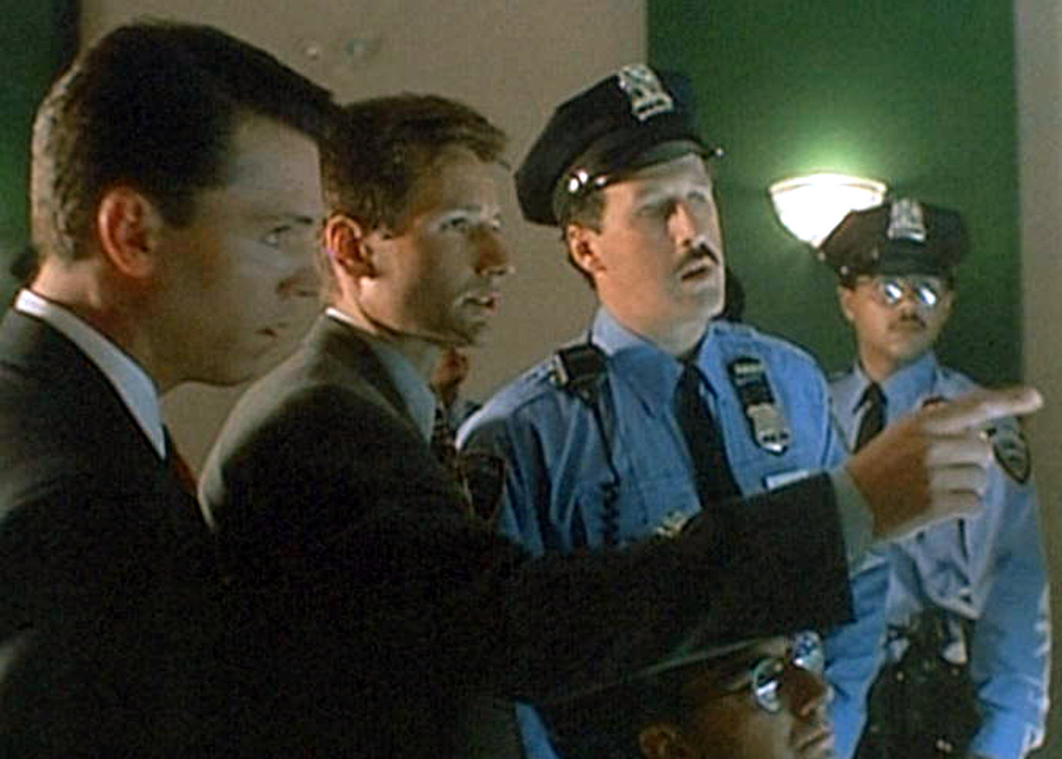 (v.l.n.r.) Det. Angela White (Dana Wheeler-Nicholson); Fox Mulder (David Duchovny); Dana Scully (Gillian Anderson)