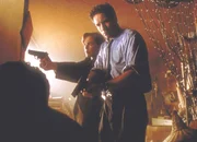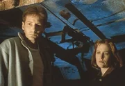 Scully (Gillian Anderson, l.) und Mulder (David Duchovny, r.) entdecken im ehemaligen Haus eines entflohenen Strafgefangenen ein grauenhaft zugerichtetes Mordopfer.