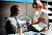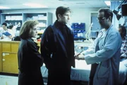 Mulder (David Duchovny, M.) und Scully (Gillian Anderson, l.) vermuten, dass die Bewohner, die ins Krankenhaus eingeliefert wurden, mit außerirdischen Lebensformen in Berühung kamen ...