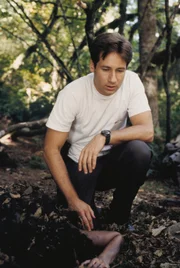 Als im Wald eine Leiche gefunden wird, werden Mulder (David Duchovny, l.) und Scully (Gillian Anderson, r.) hinzugezogen, nachdem zwei Junkies behauptet haben, ein echsenartiges Monster gesehen zu haben.