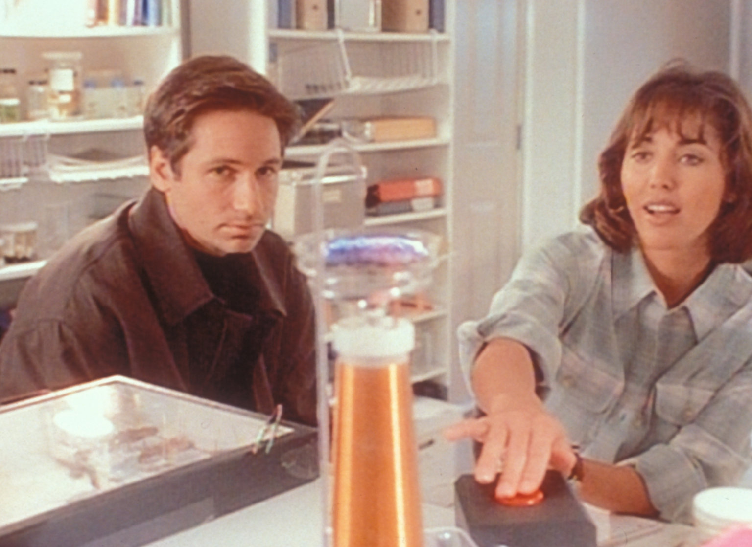 Krieg der KoprophagenMulder (David Duchovny, l.) lässt sich von der jungen Entomologin Dr. Bambi Berenbaum (Bobbie Phillips, r.) über die spezifischen Eigenschaften von Kakerlaken aufklären, die wie eine biblische Plage den Ort Millers Grove heimsuchen.Bild: © TM + © 2000 Twentieth Century Fox Film Corporation. All Rights Reserved. Lizenzbild frei