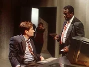 SuzanneByers (Bruce Harwood, r.) trifft auf einer Messe der Rüstungsindustrie in Las Vegas Suzanne Modesky (Signy Coleman, l.) wieder, die vor zehn Jahren von Geheimdienstagenten entführt worden war.Bild: © TM + © 2000 Twentieth Century Fox Film Corporation. All Rights Reserved. Lizenzbild frei