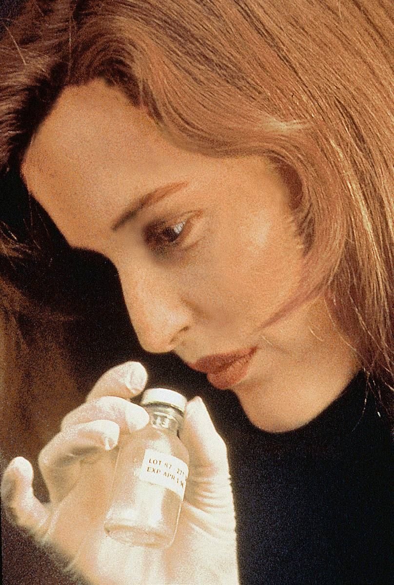 Emily - Teil 1Dana Scully (Gillian Anderson) nimmt Einsicht in die Unterlagen zu dem Fall der Familie Sim.Bild: © TM + © 2000 Twentieth Century Fox Film Corporation. All Rights Reserved. Lizenzbild frei