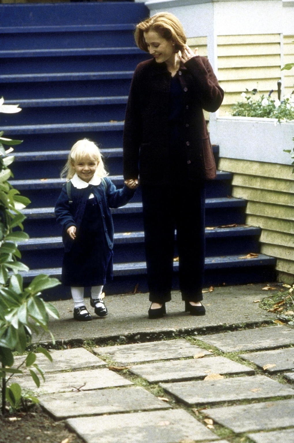 Emily - Teil 1Dana Scully (Gillian Anderson, r.) begleitet die kleine Emily (Mecca Menard, l.), die in ein Kinderheim gebracht werden soll.Bild: © TM + © 2000 Twentieth Century Fox Film Corporation. All Rights Reserved. Lizenzbild frei
