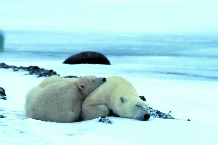 Nomaden in der ArktisDicht bei der Mutter sind kleine Eisbären am besten vor den großen Männchen geschützt, die ihnen gefährlich werden können.Bild: © MDR/NDR/Wildlifed