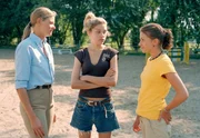 Die Pferdeflüsterin00 Uhr im Ersten. Während sich Alina (Marett Katalin Klahn,re) auf die Zusammenarbeit mit Pferdeflüsterin Andrea Kutsch (li) freut, zieht Jennifer (Jana Flötotto) eine Schnute. Das passt ihr gar nicht in den Kram.Bild: © WDR/Televersal