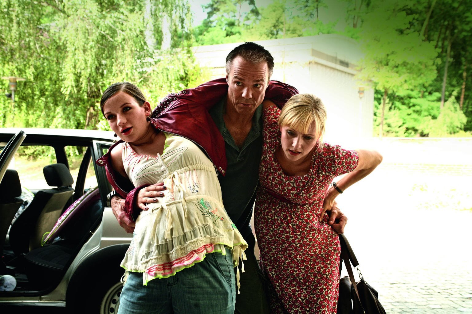 Allein unter MütternAls seine Tochter Marla (Nina Gummich, r.) ungeplant schwanger wird und seine Freundin Sabine (Dana Golombek, l.) ebenfalls, will Harald (Hannes Jaenicke, M.) nach anfänglichem Schock die einmalige Chance ergreifen, um Verpasstes nachzuholen und alte Fehler wieder gut zu machen. Da sind Chaos und Turbulenzen vorprogrammiert ...Bild: © Sat.1 Emotions