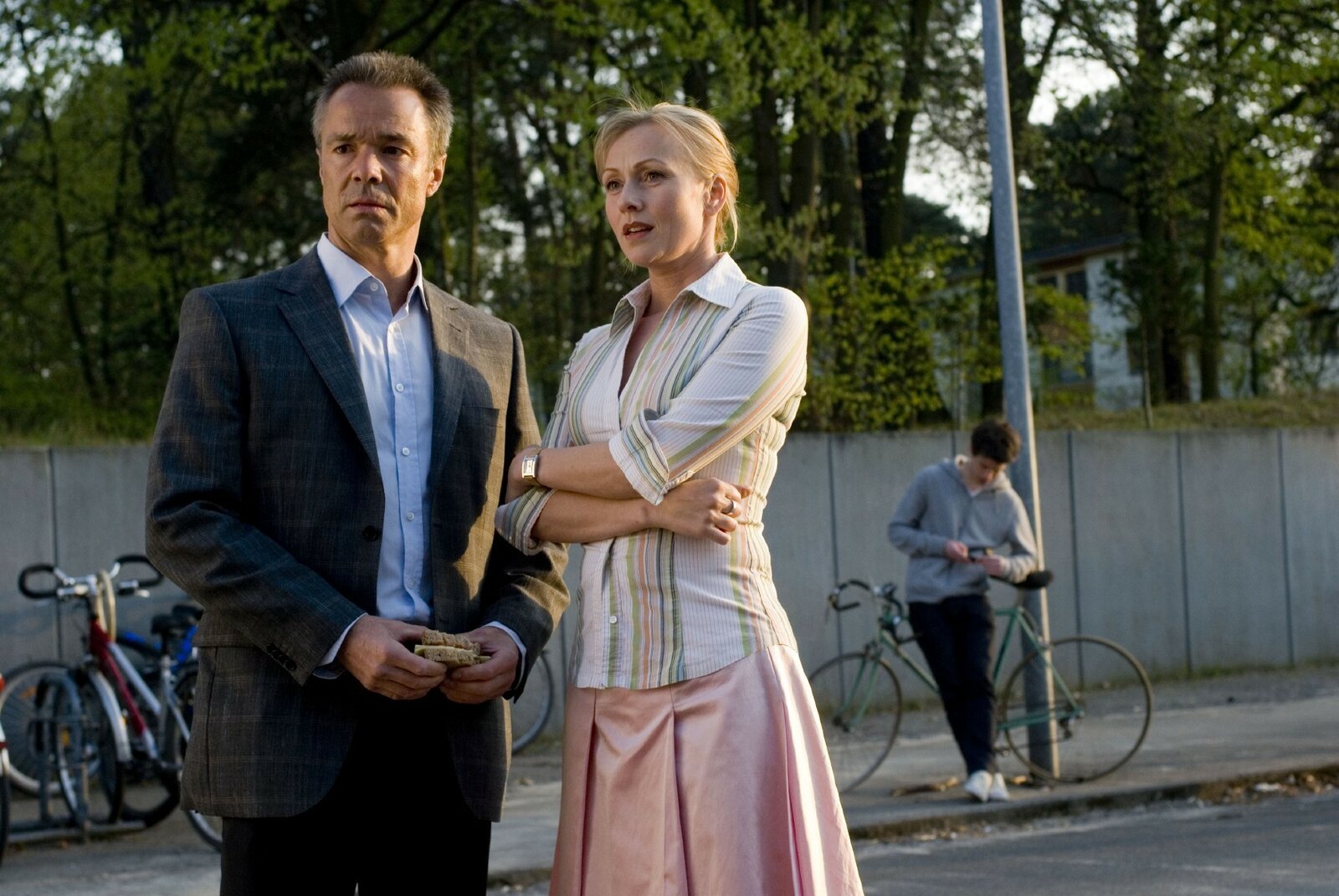 Allein unter Nachbarn"Du weißt doch, wo ich schon überall aufgeräumt habe: Kongo, Kosovo, Hindukusch." Harald (Hannes Jaenicke) kann der Berliner Multikulti-Bezirk, in dem er, Sabine (Dana Golombek, r.) und die Kinder eine große Wohnung bezogen haben, nicht erschrecken. Doch dann wird Töchterchen Floh angegriffen ...Bild: © SAT.1 / Aki Pfeiffer Eigenproduktionsbild frei
