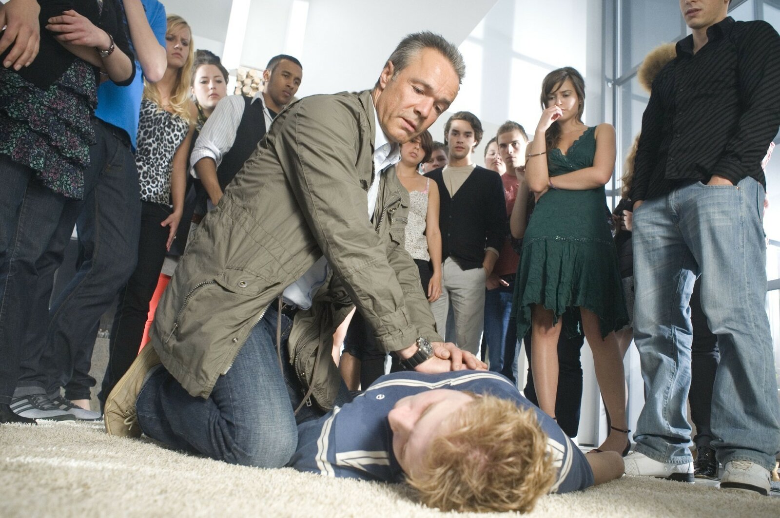 Allein unter SchülernLässt sich total volllaufen: Svens (Philipp Gerstner, liegend) Retter ist ausgerechnet sein ärgster Widersacher Harald Westphal (Hannes Jaenicke, M.) ...Bild: © ProSieben Media AG Sat.1