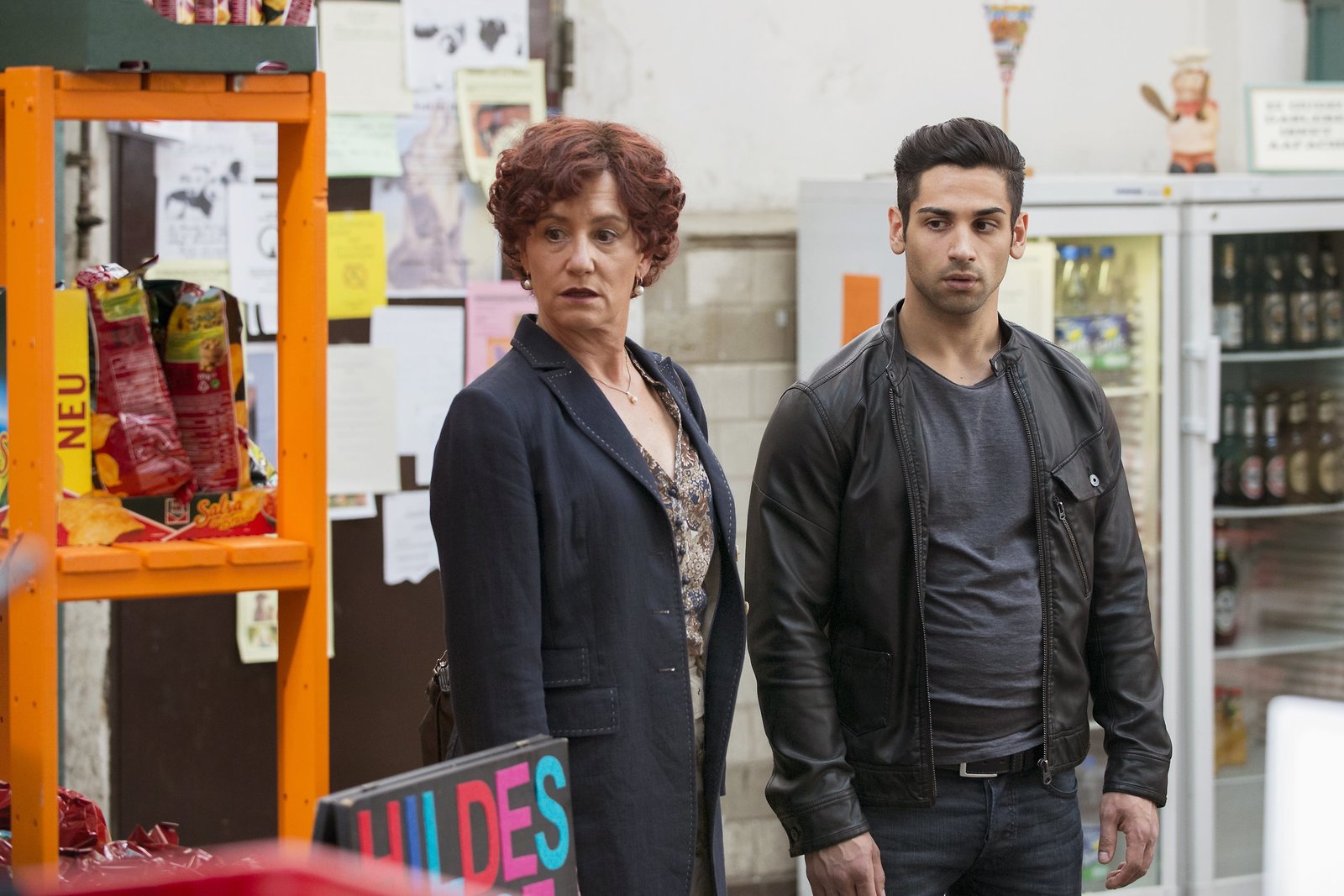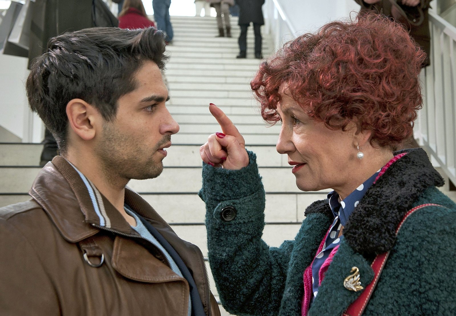 Leiche im KellerHertha Frohwitter (Ulrike Krumbiegel) und Mario Petrassi (Daniel Rodic).Bild: © WDR/Degeto/Christian Lüdeke