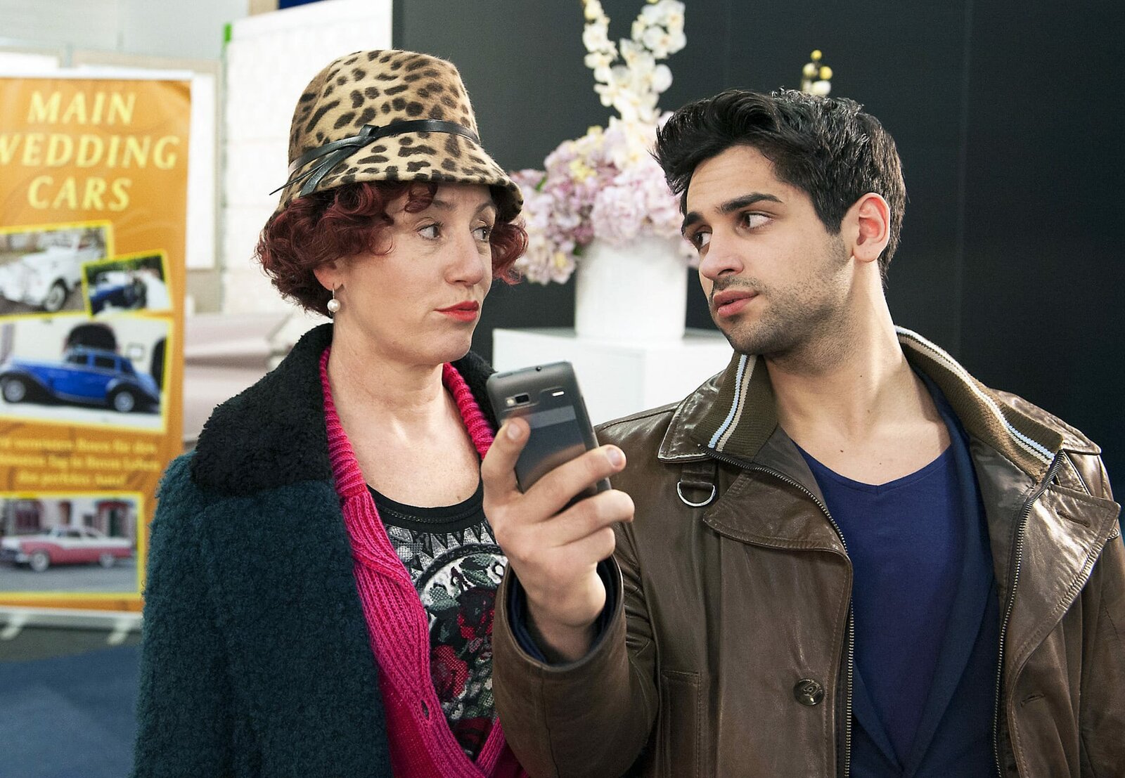 Leiche im KellerHertha Frohwitter (Ulrike Krumbiegel) und Mario Petrassi (Daniel Rodic).Bild: © MDR/Degeto/Christian Lüdeke
