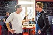 Julians rettende IdeeJulian (Thorsten Grasshoff, r.) gelingt es, den Powersnack-Deal mit Robert Bauer (Rainer Furch) erfolgreich abzuschliessen und damit die Produktion zu retten.Bild: © TVNOW / Willi Weber