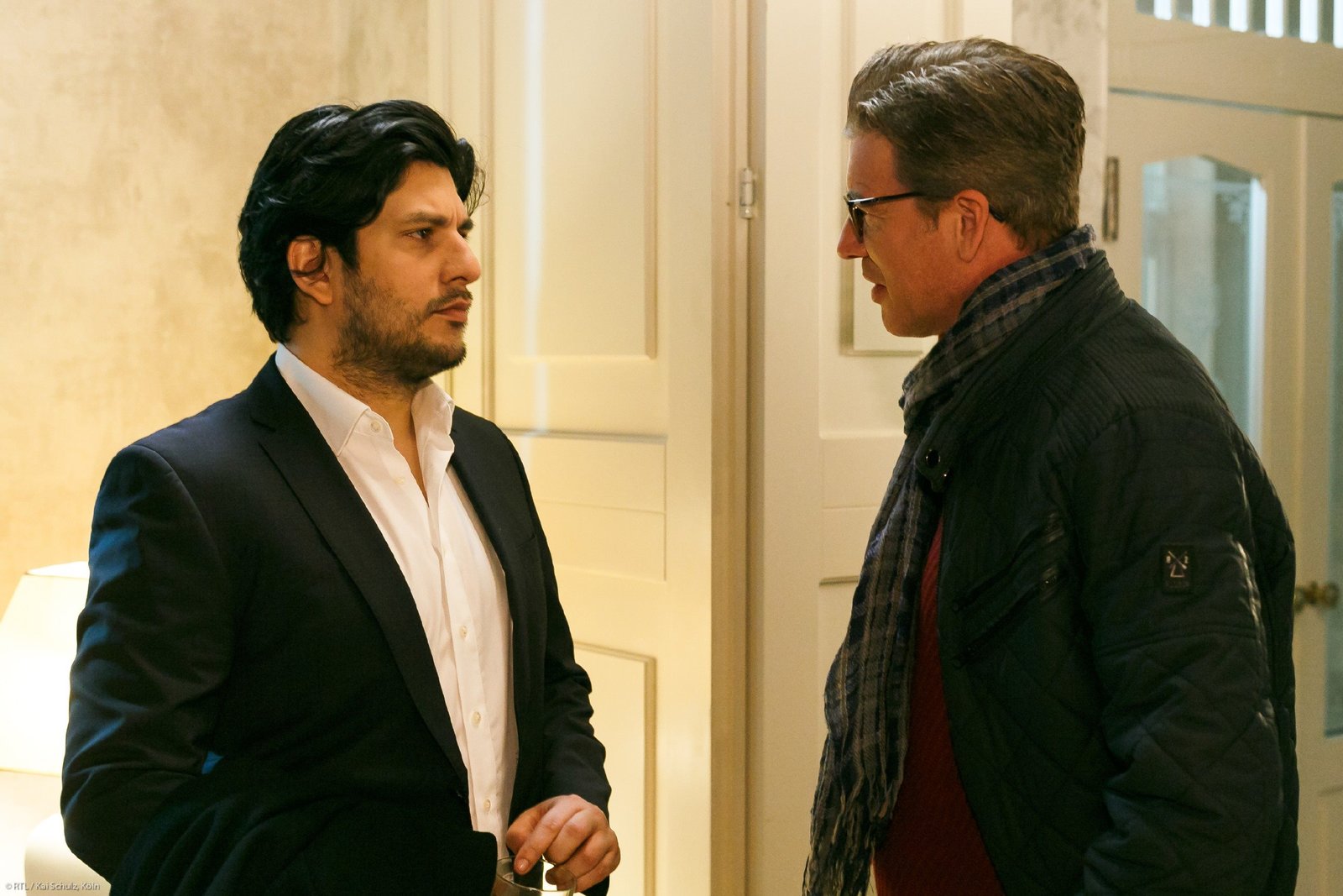 GewissensbisseMaximilian (Francisco Medina, l.) und Christoph (Lars Korten) bieten Niclas einen neuen Ansatzpunkt, um den Steinkamps zu schaden.Bild: © RTL