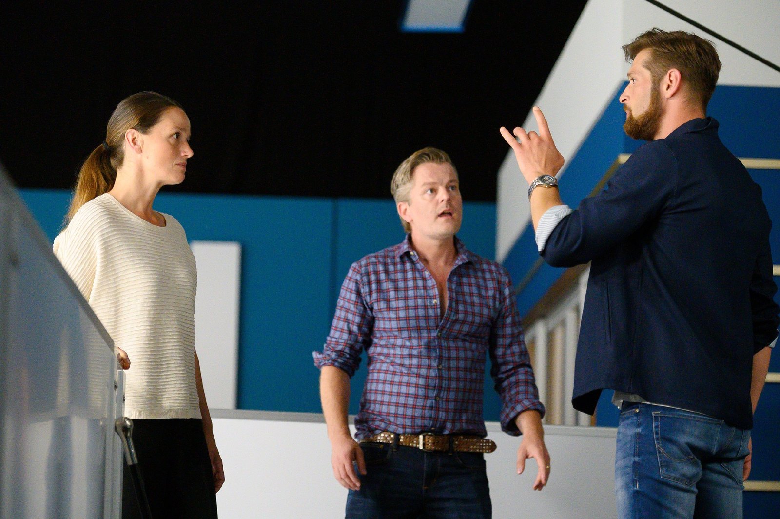 Ungemütliche ZusammenarbeitSimone (Tatjana Clasing, r.) geniesst es, Richard (Silvan-Pierre Leirich) unter Druck zu setzen. Nadja (Birgit Würz) hält sich zurück und wartet ab, wie Richard auf die Provokation reagiert...Bild: © TVNOW / Willi Weber