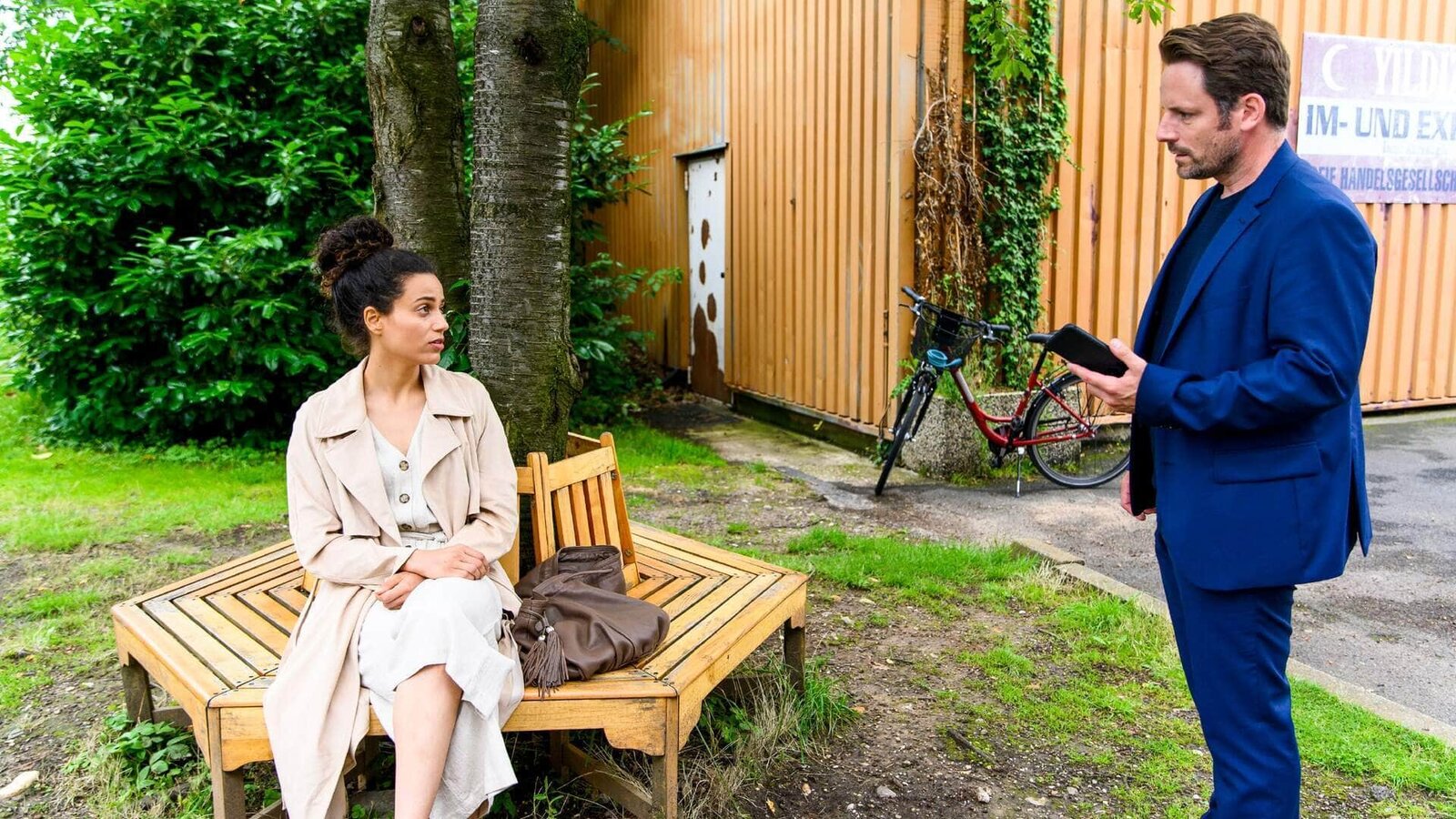Ein brisanter GefallenJenny (Christiane Klimt) kann ihr Geheimnis nicht länger für sich behalten und gesteht Roman (Dennis Grabosch), dass sie gar nicht schwanger ist. Und dann überrumpelt sie ihn mit einer ungewöhnlichen Bitte...Bild: © TVNOW / Martin Menke