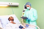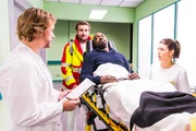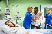 Schuld am StreitFinn (Christopher Kohn) und Pauline (Maike Johanna Reuter) kümmern sich um Moritz' Vater Dan (Ricky Watson), der einen Schwächeanfall erlitten hat.Bild: © TVNOW / Julia Feldhagen