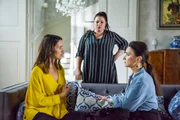 Simone (Tatjana Clasing, r.) erzählt Jenny (Kaja Schmidt-Tychsen, l.) und Vanessa (Julia Augustin), dass sie glaubt, mit Moritz' Hilfe die Eisshow retten zu können.Bild: © TVNOW / Julia Feldhagen