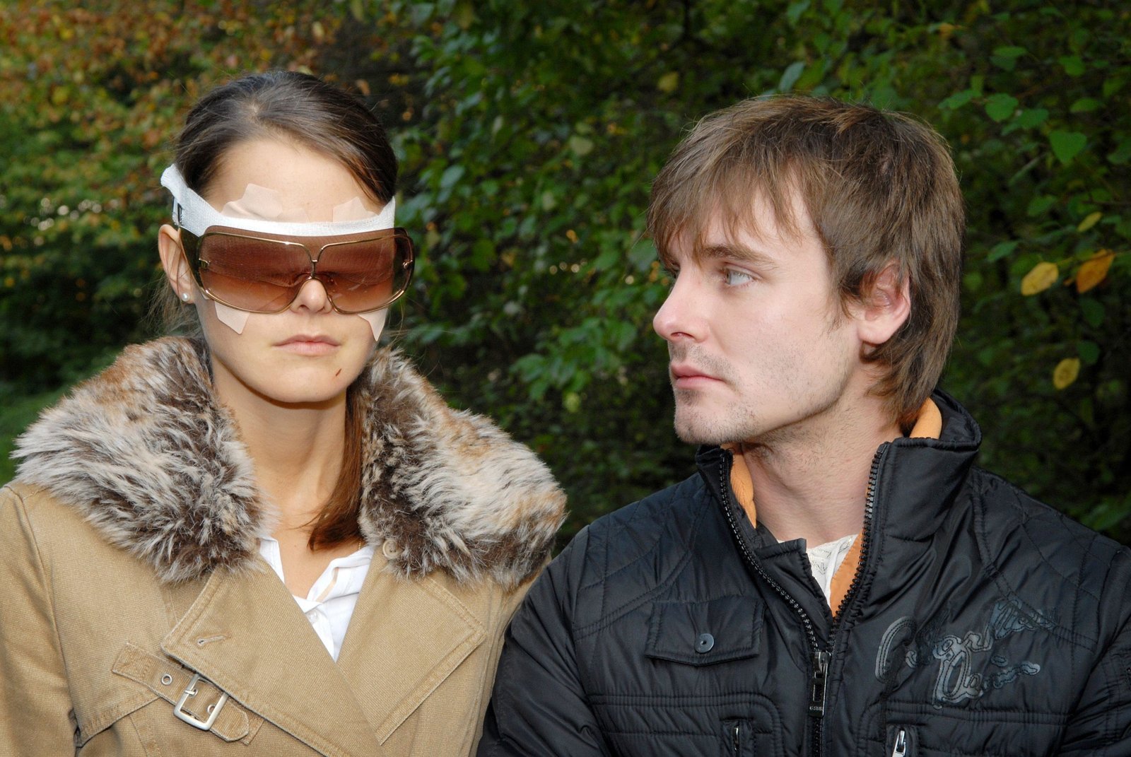 Jenny ist aufgrund ihrer Erblindung verzweifeltRoman (Dennis Grabosch) begleitet Jenny (Christiane Klimt), die zunehmend unter ihrer Blindheit leidet. Sie rechnet nicht mehr mit einer Genesung und sieht in der Behinderung die gerechte Strafe für ihre Schuld an Julians Tod.Bild: © TVNOW / Martin Menke