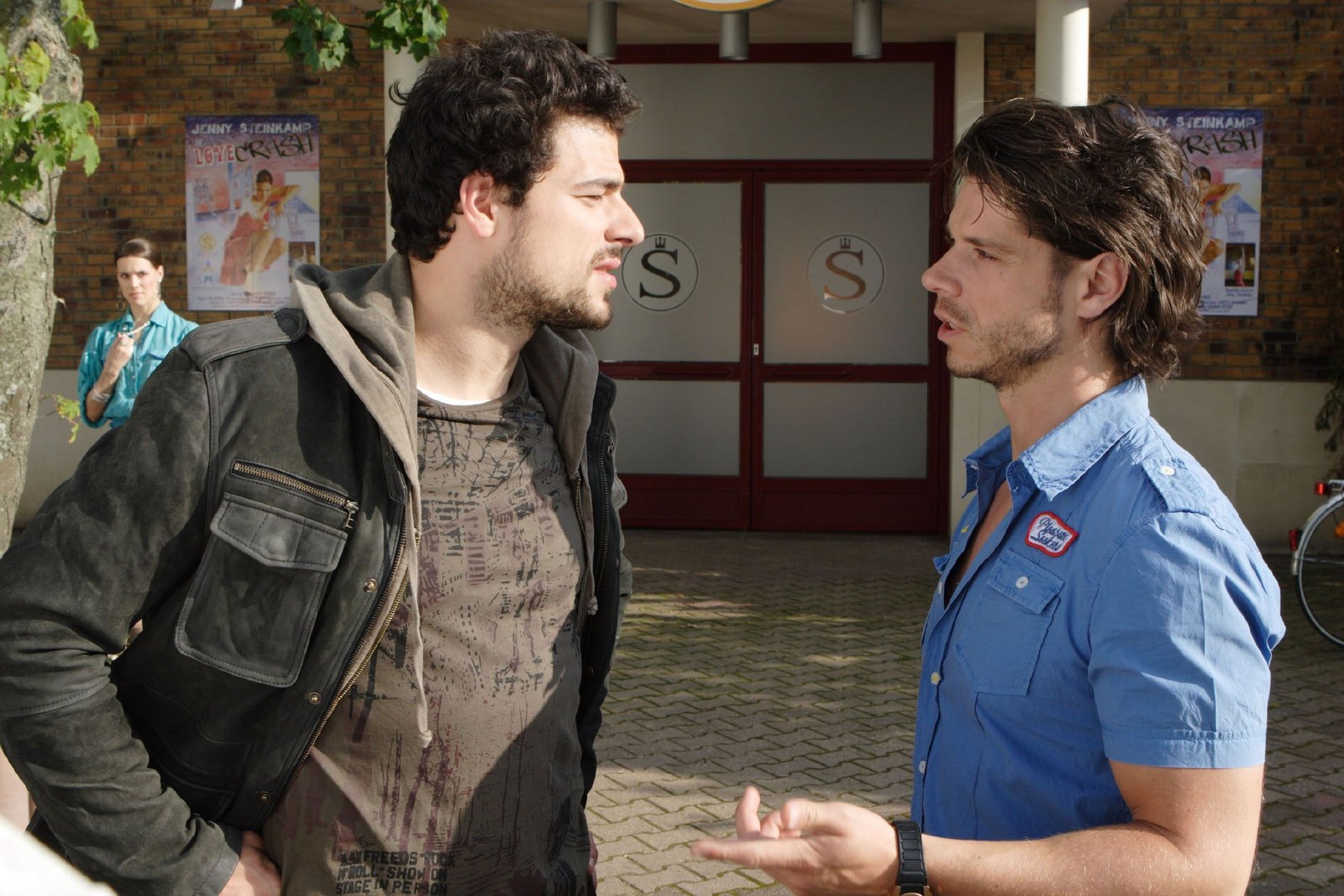 Mike möchte, dass Lars Diana in Ruhe lässtMike (Stephen Dürr) will, dass Lars (Tobias Licht, l.) Diana in Ruhe lassen soll. Jenny (Silvia Maleen, h.) erfährt so von Lars Zuneigung von Jenny.Bild: © TVNOW / Frank Hempel