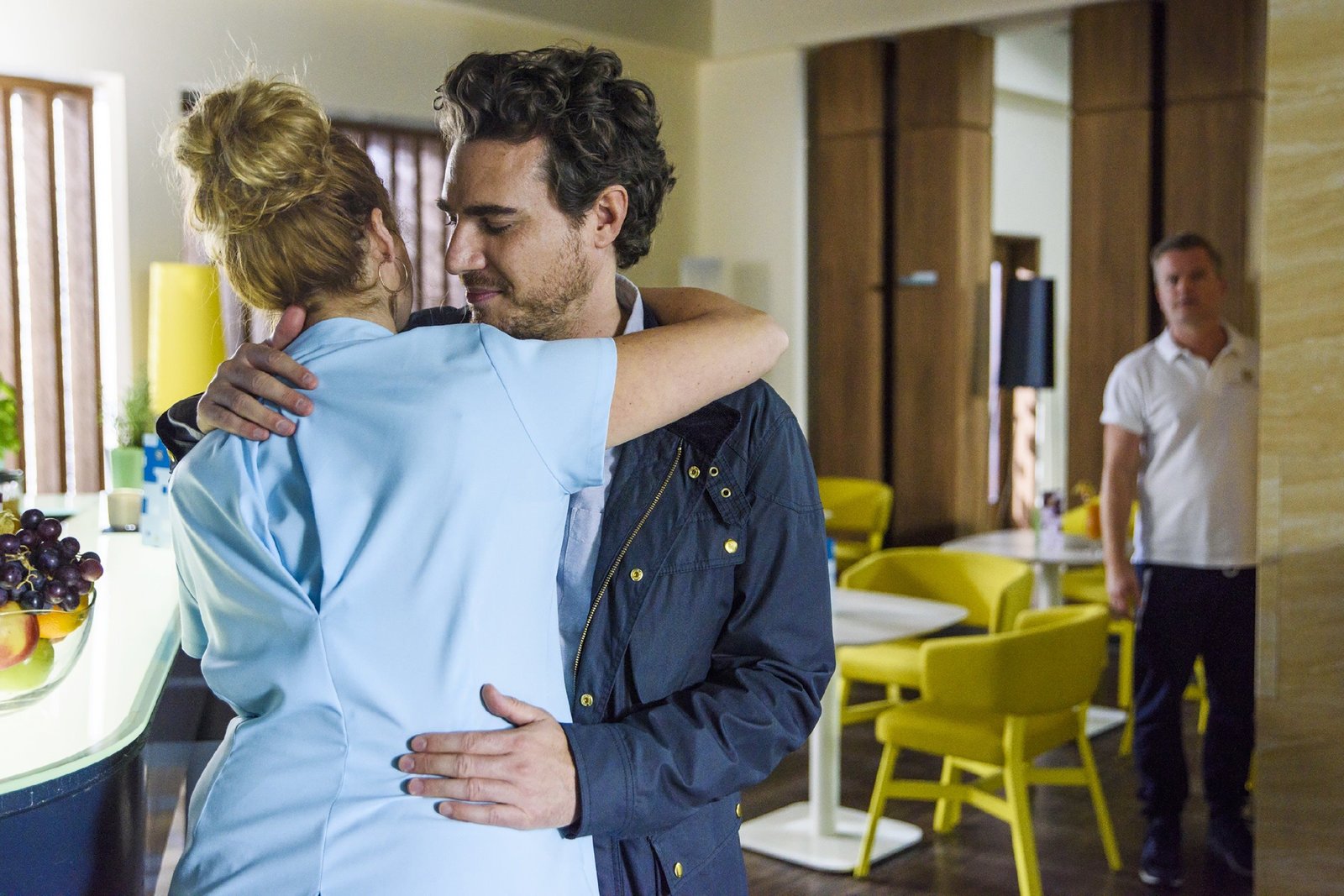 RisikoEin naher Abschiedsmoment zwischen Steffi (Madeleine Krakor) und Sören (Maximilian Neuhäußer) schürt Ingos (André Dietz, r.) Eifersucht.Bild: © RTL