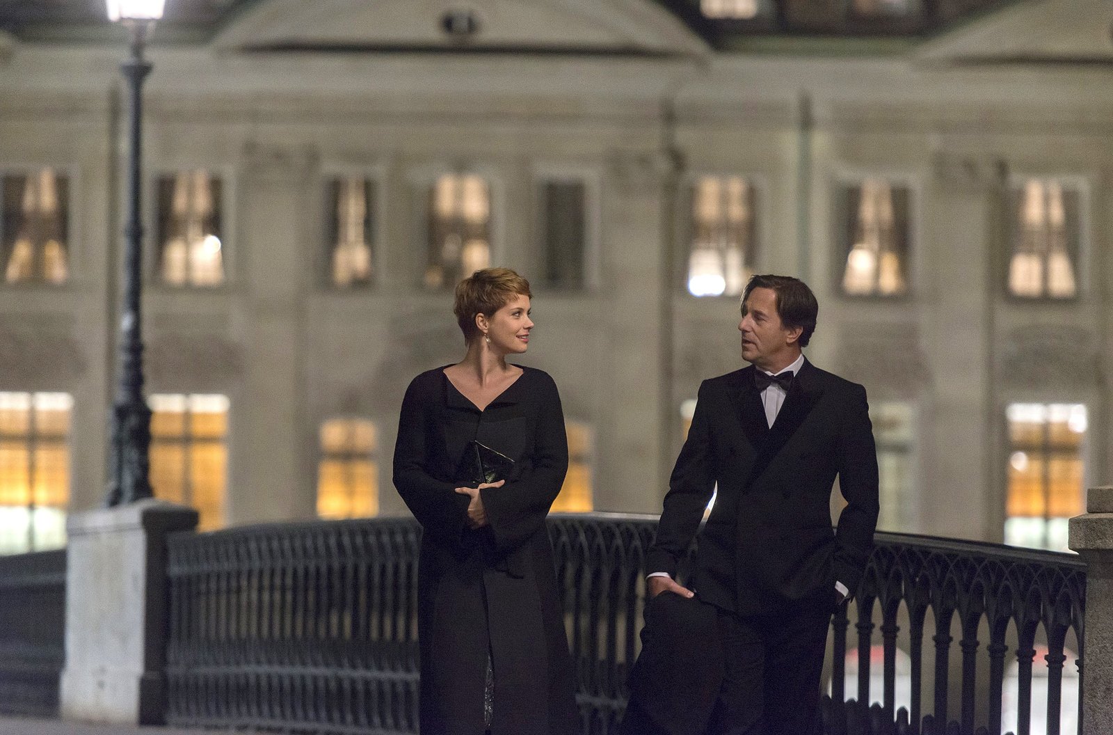 Allmen und das Geheimnis des rosa DiamantenHeino Ferch (Johann Friedrich von Allmen), Nora von Waldstätten (Vanessa).Bild: © ARD Degeto/BR/Hardy Brackmann