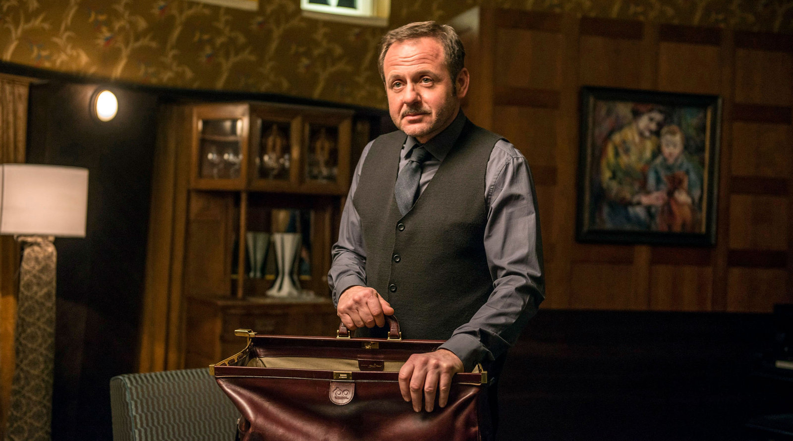 Allmen und das Geheimnis der LibellenDer feingeistige Privatier Johann Friedrich von Allmen weiß das Leben zu genießen. Leider fehlt ihm eine profane Begabung: der Umgang mit Geld, das er gerne ausgibt. Deshalb drücken den Lebemann, wie sein treuer Diener Carlos gerne in Erinnerung ruft, erhebliche finanzielle Sorgen. Heino Ferch und Samuel Finzi als außergewöhnliches Ermittlerduo in einer Bestseller-Verfilmung von Martin Suter. Foto: Johann Friedrich von Allmen (Heino Ferch, li.) steckt in Schwierigkeiten: Der grobschlächtige Wucherer Dörig (Peter Kurth) möchte endlich sein Geld.Bild: © rbb/ARD Degeto/Hardy Brackmann