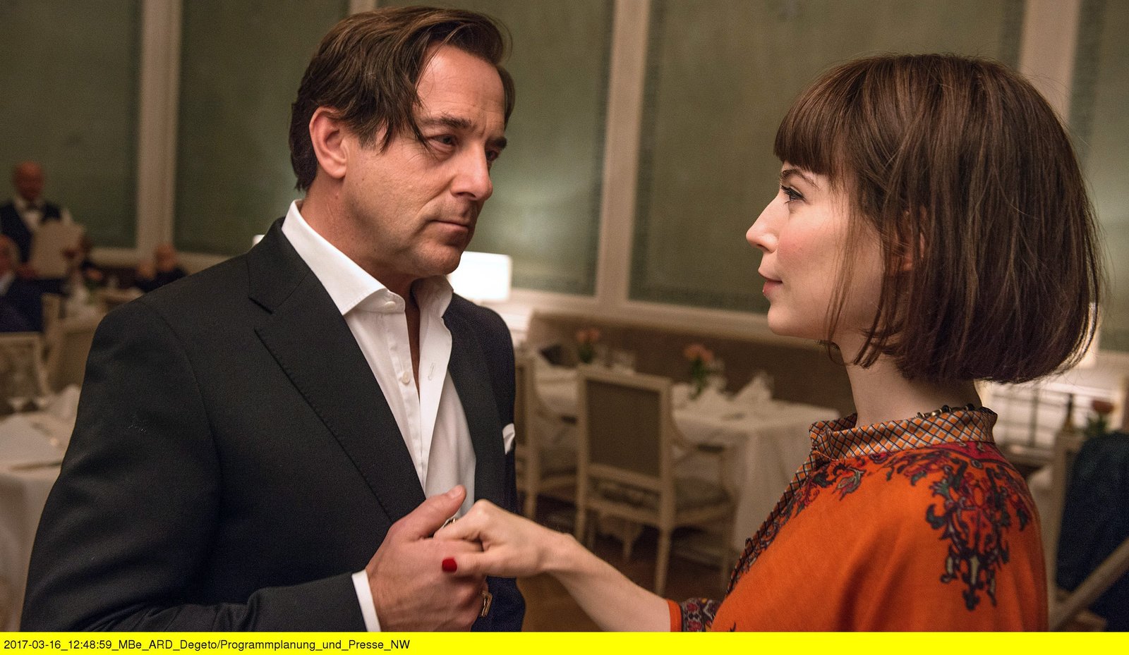 Allmen und das Geheimnis der LibellenDer feingeistige Privatier Johann Friedrich von Allmen (Heino Ferch) weiß das Leben zu genießen. Leider fehlt ihm eine profane Begabung: der Umgang mit Geld. Nun erhofft er sich durch die Affäre mit der Millionärstochter Jojo Hirt (Andrea Osvárt) seine Geldnöte zu beseitigen.Bild: © ARD Degeto/Hardy Brackmann