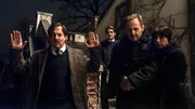 Allmen und das Geheimnis des rosa DiamantenJohann Friedrich von Almen (Heino Ferch, l.), Butler Carlos (Samuel Finzi) und Haushälterin Maria Moreno (Isabella Parkinson) stecken in der Klemme. Plötzlich taucht ein Amerikaner (Robert Seeliger, hinten) auf.Bild: © ARD Degeto/Hardy Brackmann