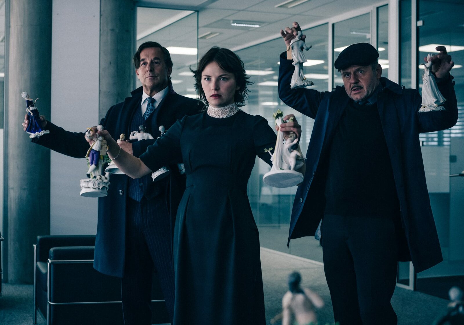 Allmen und das Geheimnis der DahlienAndrea Osvárt (Joelle 'Jojo' Hirt), Katharina Schüttler (Dalia Scheidegger), Heino Ferch (Johann Friedrich von Allmen).Bild: © ORF/Beta Film/Julie Vrabelova