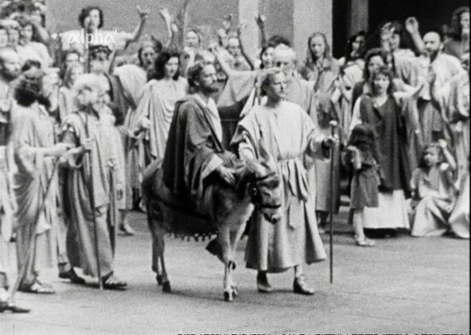 Oberammergau und die Passion - Oberammergauer PassionsspieleOberammergauer Passionsspiele 1960 - auf der Bühne: Jesus reitet in Jerualem ein.Bild: © BR