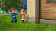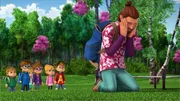 Die ZeitmaschineAls die Chipmunks sich über die Zustände im Sommercamp beschweren, klagt Auggie ihnen sein Leid. Er ist der ewige Konkurrent seines Bruders. Also beschließen die Chipmunks, Auggies Anlage aufzupeppen.Bild: © TM & © Bagdasarian Productions, LLC.