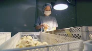 Maschine HuhnEine koreanische Mitarbeiterin selektiert männliche und weibliche Küken in einem Biobetrieb in OberösterreichBild: © 3sat