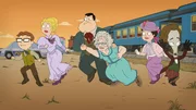 Todeszug nach Dodge CityL-R: Steve, Francine, Stan, Aunt Karen, Hayley, RogerBild: © ViacomCBS