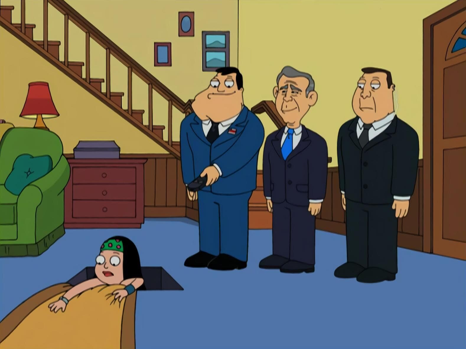 Mein Freund BushHayley (l.), Stan (2.v.l.), George W. Bush (2.v.r.)Bild: © ViacomCBS