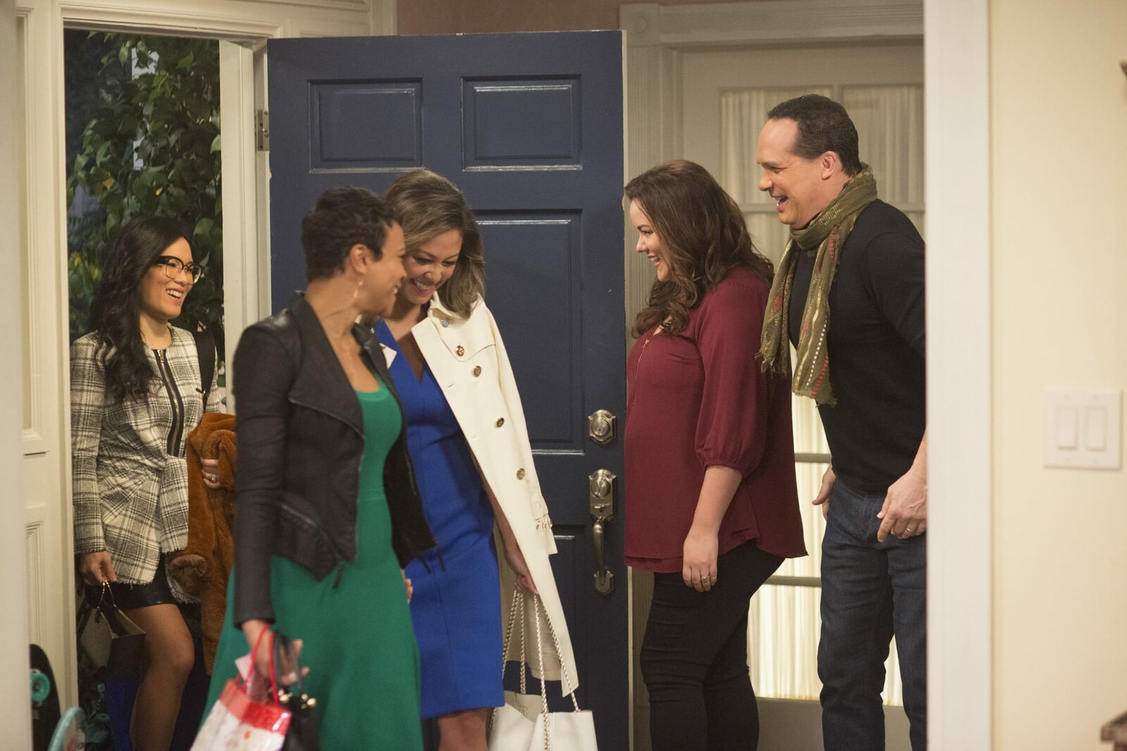 Katie fliegt auf(v.l.n.r.) Doris (Ali Wong); Angela (Carly Hughes); Crissy (Vanessa Lachey); Katie (Katy Mixon); Greg (Diedrich Bader)Bild: © 2019 American Broadcasting Companies, Inc. All rights reserved. / Michael Ansell Lizenzbild frei