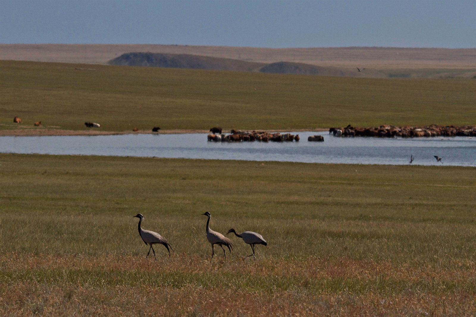Die heiligen QuellenEin Paar Jungfernkraniche an einem Steppensee. Diese Vögel sind monogam und leben in Paaren.Bild: © ARTE France / © Terra Mater/Interspot/Franz Hafner