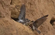 Die heiligen QuellenUferschwalben graben ihre Brutröhren vorzugsweise in feinsandige, steile Uferböschungen und Abbruchkanten.Bild: © ARTE France / © Terra Mater/Interspot/Franz Hafner