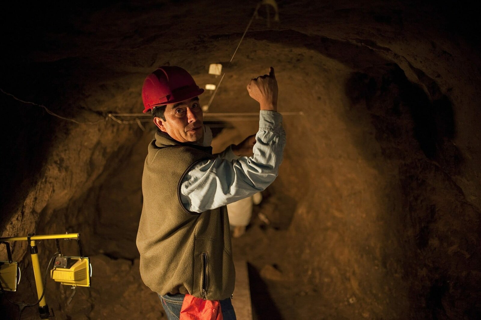 Rätsel um TeotihuacánAncient Aliens Season10 EP Ancient Aliens Unerklaerliche Phaenomene Staffel 10 EP Ra?tsel um Teotihuaca?n TEOTIHUACAN, MEXICO - MARCH 24: Mexican archaeologist Sergio Gomez gives some explanations inside a tunnel found under the ruins of the Feathered Serpent temple at the archaeological site of Teotihuacan, 45 km northeast of Mexico City, on March 24, 2011. Archeologists are unearthing a 2,000-year-old tunnel outside bustling modern day Mexico City searching for clues to one of the region's most influential former civilizations. Heavy rains at the site of Teotihuacan, accidentally provided the first sign of the tunnel's existence in 2003, when the water made a tiny hole in the ground. AFP PHOTO/Ronaldo Schemidt (Photo credit should read Ronaldo Schemidt/AFP/Getty Images)Ancient Aliens Season10 EP Ancient Aliens Unerklaerliche Phaenomene Staffel 10 EP Ra?tsel um Teotihuaca?n TEOTIHUACAN, MEXICO - MARCH 24: Mexican archaeologist Sergio Gomez gives some explanations inside a tunnel found under the ruins of the Feathered Serpent temple at the archaeological site of Teotihuacan, 45 km northeast of Mexico City, on March 24, 2011. Archeologists are unearthing a 2,000-year-old tunnel outside bustling modern day Mexico City searching for clues to one of the region's most influential former civilizations. Heavy rains at the site of Teotihuacan, accidentally provided the first sign of the tunnel's existence in 2003, when the water made a tiny hole in the ground. AFP PHOTO/Ronaldo Schemidt (Photo credit should read Ronaldo Schemidt/AFP/Getty Images)Bild: © 2016 A&E Networks, LLC. All rights reserved. Lizenzbild frei