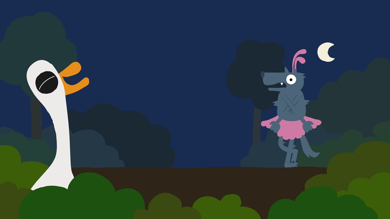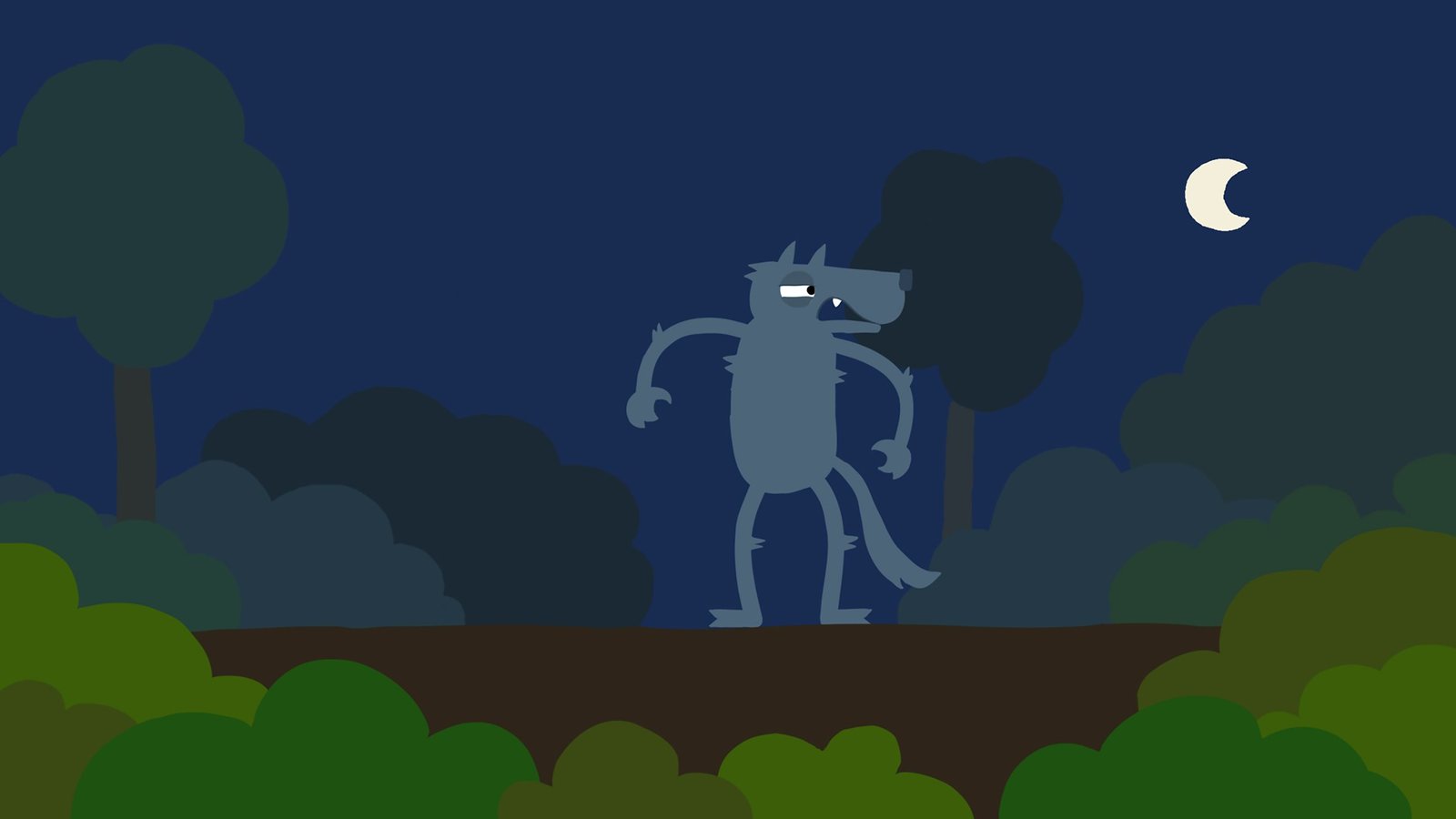 WolfDer Wolf bemerkt, dass er entdeckt wurde.Bild: © KiKA/SWR/Film Bilder/Julia Ocker