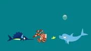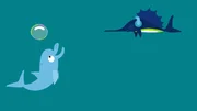 DelfinDer Delphin erklärt dem kleinen Fisch, was mit seiner Blase geschehen ist.Bild: © KiKA/SWR/Film Bilder/Julia Ocker