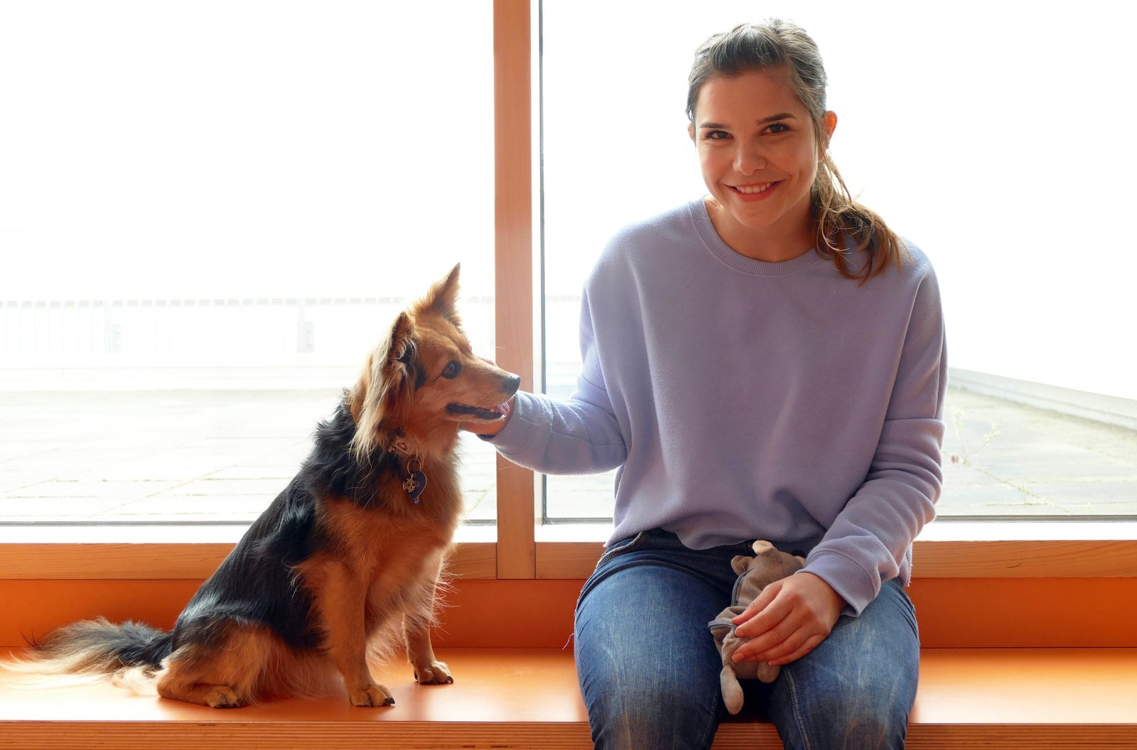 Schulhund Lunka im EinsatzAnna und Schulhündin Lunka haben kurz Pause vom turbulenten Schultag.Bild: © BR/Text + Bild Medienproduktion